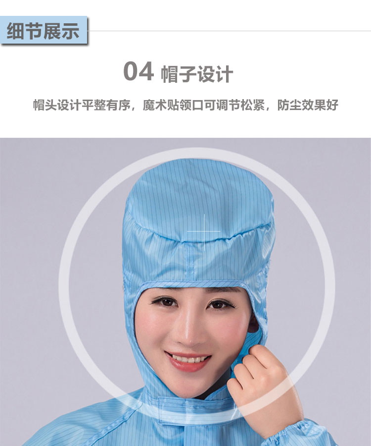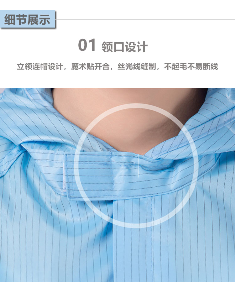 防靜電無塵連體服是由專業的防靜電面料制作,采用滌綸長絲與高性能導電纖維編織而成,具有高效、永久的防靜電、防塵性能,能有效釋放人體靜電荷,從而滿足高級別無塵環境的要求。廣泛應用于電子電器、食品、生物制藥、實驗室等無塵車間及產線。