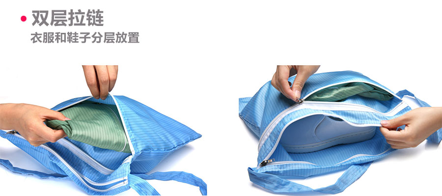 防靜電無塵包是由專業的防靜電面料制作,采用滌綸長絲與高性能導電纖維編織而成,具有高效、永久的防靜電、防塵性能,能有效釋放人體靜電荷,從而滿足高級別無塵環境的要求??膳c防靜電無塵服適配,適用于潔凈作業車間。
