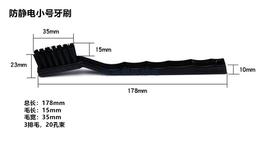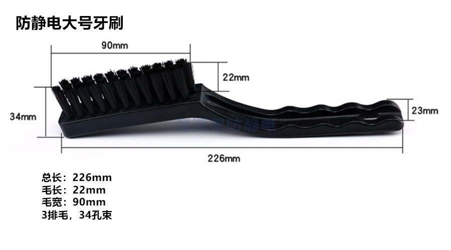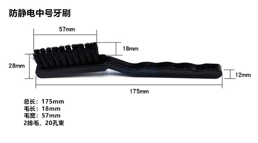 防靜電毛刷也稱防靜電刷,其手柄部分由高強度PP塑料加導電粉制成,刷毛部分由PA尼龍加導電粉制成,具有耐磨、耐高溫、不粘塵、韌性好、無異味等極佳性能,主要用于清潔各種元器件,掃除PCB線路板等器件的表面污物,適合于清潔、清洗、包裝區等使用。防靜電毛刷按外形大致可分為:防靜電牙刷(又稱曲柄型)、防靜電U型刷、防靜電直柄刷、防靜電排刷、防靜電圓柄刷。
