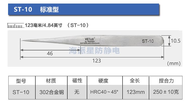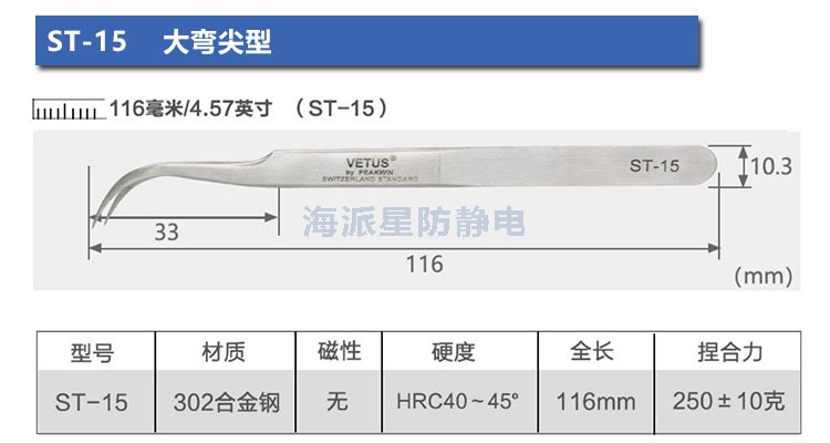 | ST-12 | 鑷子長(zhǎng)度更長(zhǎng),前端寬度更寬,適合夾取電路板等比較用力場(chǎng)合 | ||||||